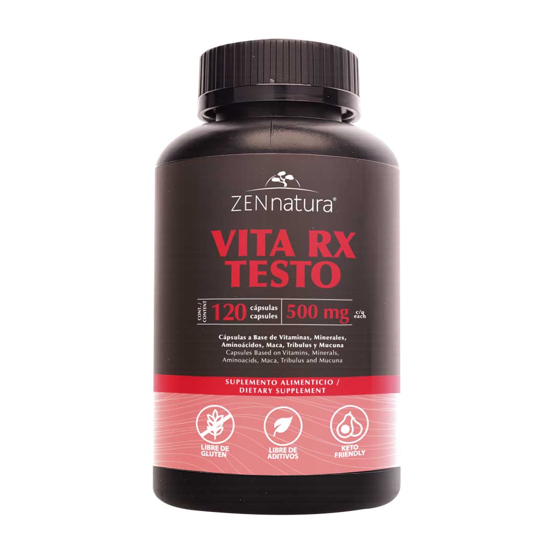 VITA RX TESTO 500MG CON MAGNESIO, TRIBULUS, LONG JACK, FENOGRECO, MACA NEGRA, DAMIANA, SEMILLA DE CALABAZA, YIN YANG HOU, L-ARGININA, ZINC, SELENIO Y CIRUELO AFRICANO