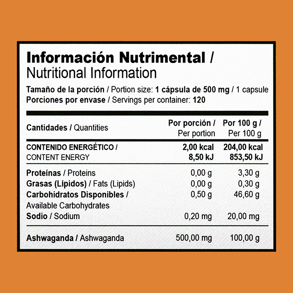 Ashwagandha Root 500 mg | 120 Cápsulas